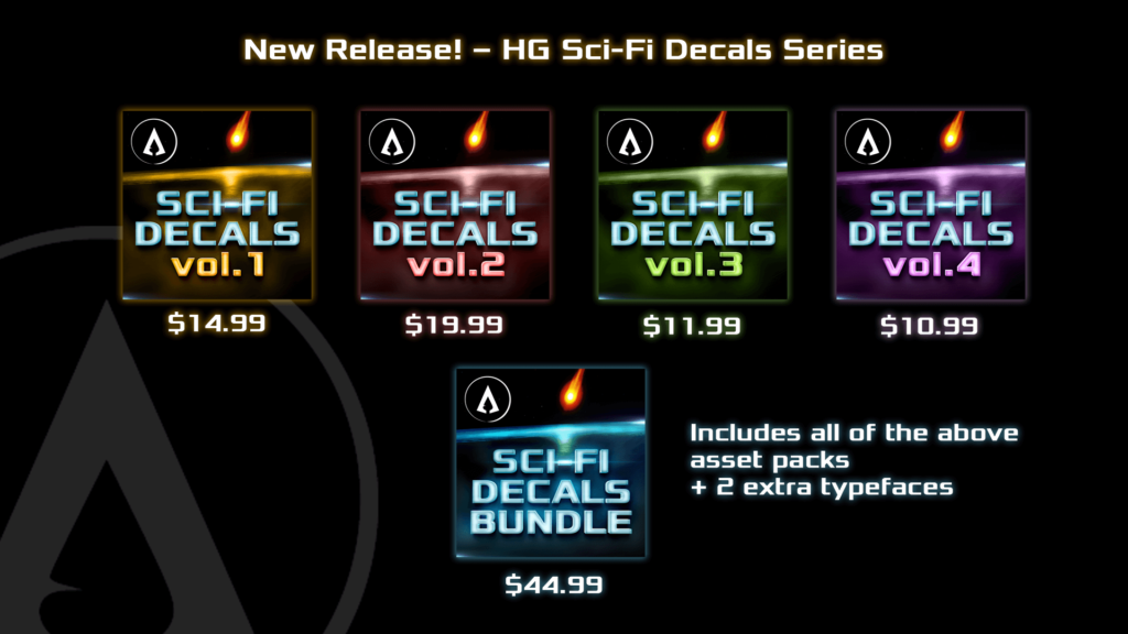The HG Sci-Fi Decals Series is available now on the UE4 Marketplace and if you are a patron you can get it for free on our Patreon page. Enjoy and thank you for your support.