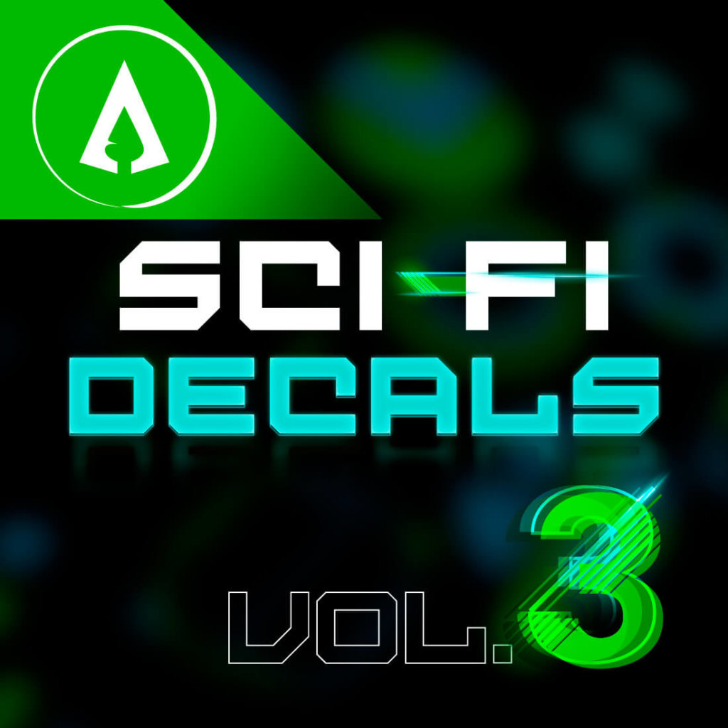 All other assets shown in the screenshots besides those found in Sci-Fi Decals Vol. 3 are for demonstration purposes only and are not included in this asset pack.