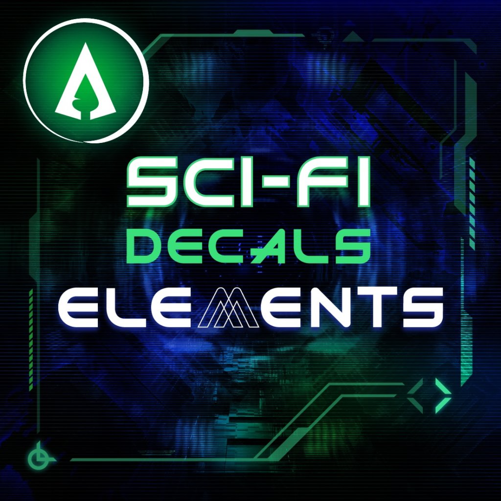 PLEASE NOTE: All other assets shown in the screenshots besides those found in “HG: Sci-Fi Decals Elements” are for demonstration purposes only and are not included in this asset pack. The puddles shown are from our “HG: Puddle Decals” asset pack and the letter and word decals are from our “HG: Sci-Fi Decals Bundle”.
