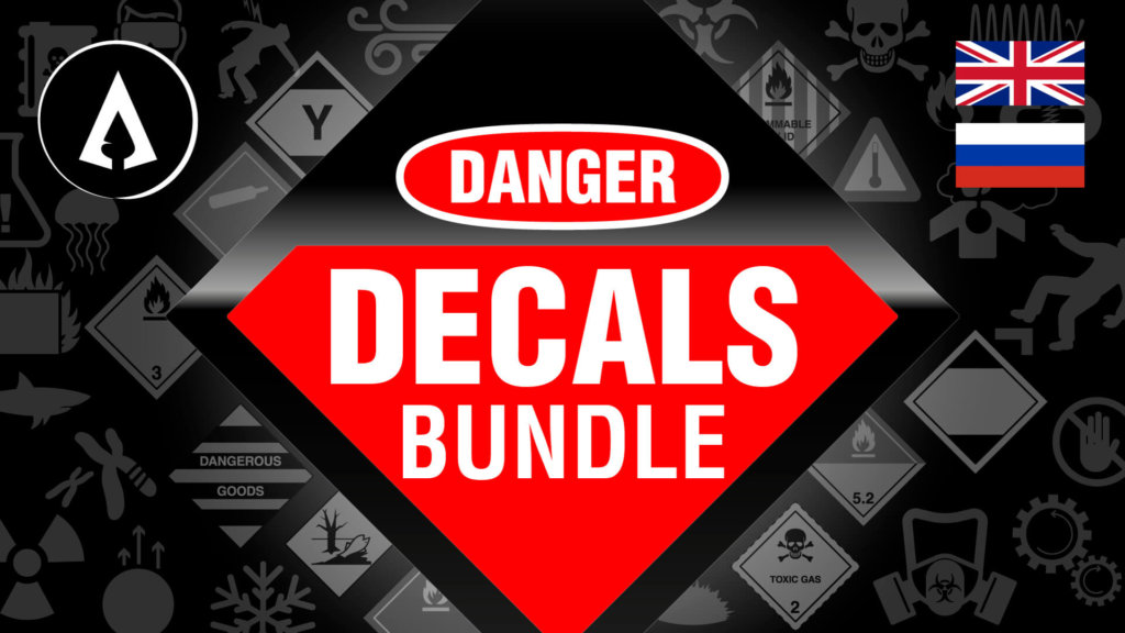 If you already own any of the asset packs from the “HG Danger Signs Decals” series and you update them you will find all the decals available also in the Russian language.